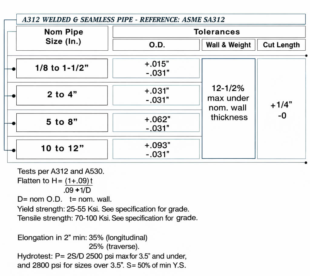 A312 is a standard apecification for seamless and welded austenitic stainless steel pipe intended for high temperature and corrosive service.
